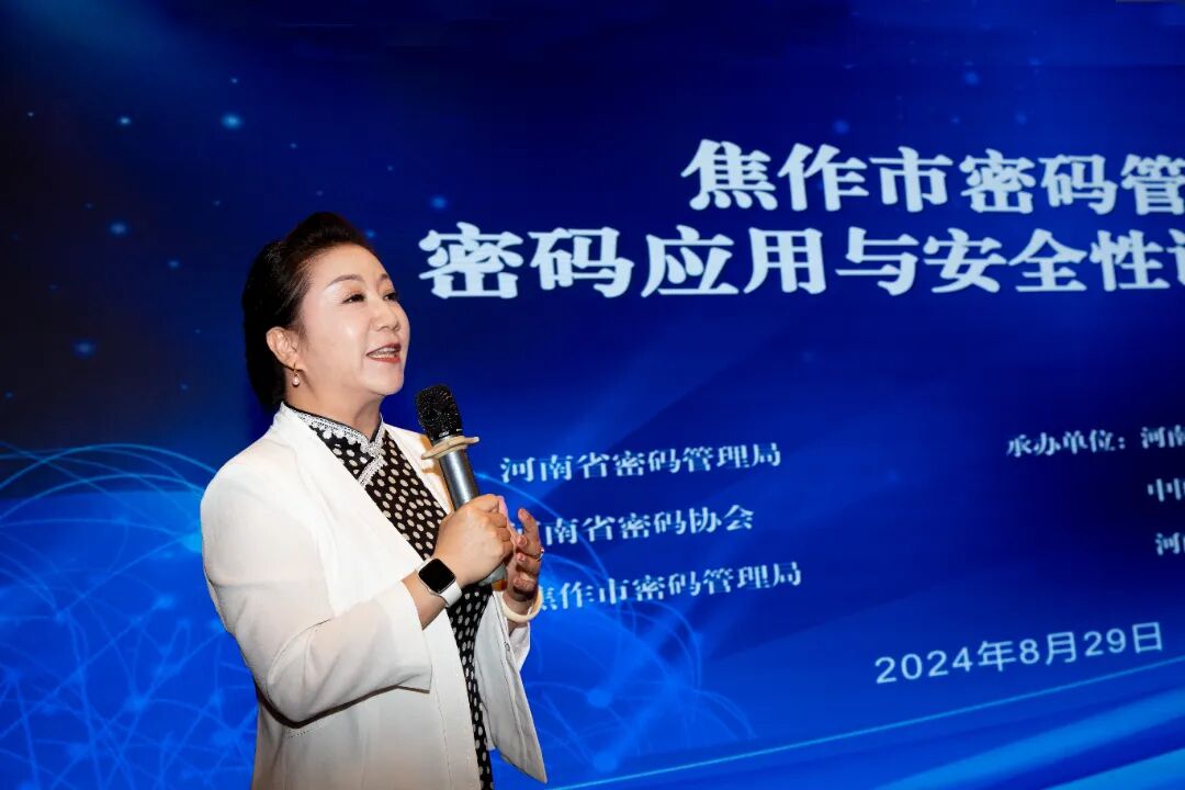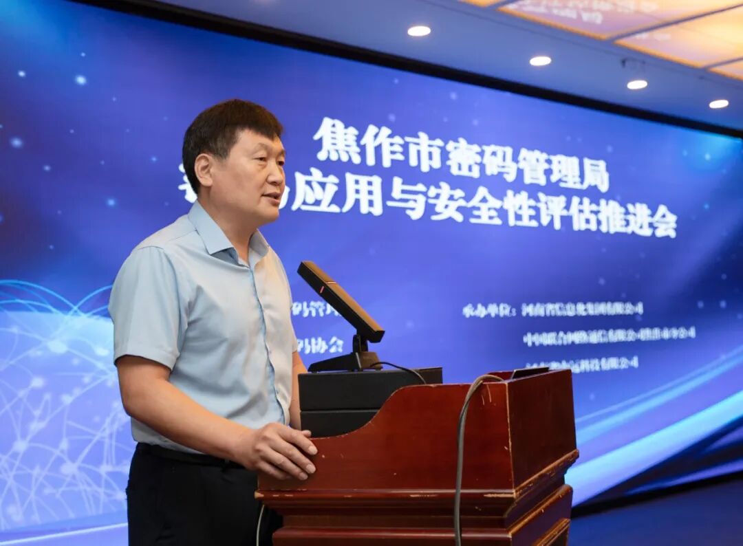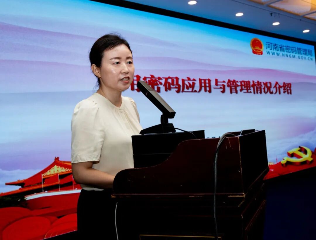 会上,河南省密码管理局商密处副处长李倩、河南省理工大学教授汤永利,进行了密码政策宣讲和专题讲座。河南省信息化集团、河南中远科技有限公司、中国联通公司焦作市分公司分别从电子认证在政务系统的应用、密码应用与安全性评估、密码资源池建设与应用等方面进行了交流分享。